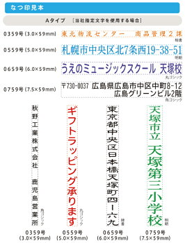 ご注文の際はインキ色・書体・枠の有無・縦/横をお選びの上、一行ごとにご希望の印面をご入力下さい。